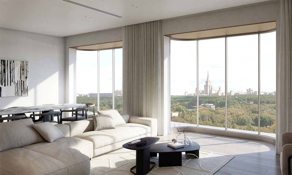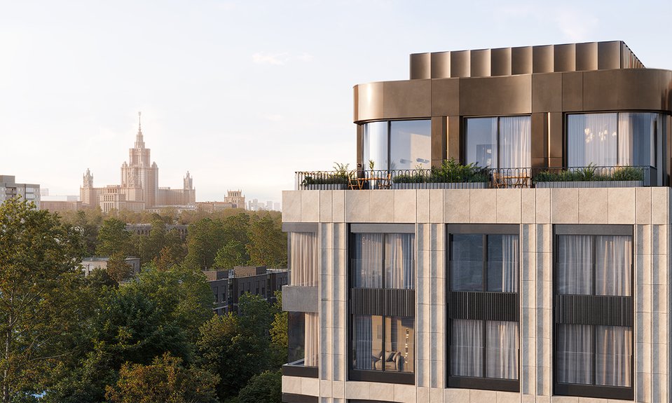 Дом площадью 12 тыс. кв. м рассчитан на 59 квартир с авторскими планировочными решениями. Количество комнат варьируется от одной до пяти, также есть пентхаусы с персональным входом для владельцев и апартаменты с видовыми террасами. Панорамное остекление наполнит интерьеры естественным светом, открывая виды на зеленые массивы и архитектурные памятники района. Инфраструктура будет включать подземный паркинг, кладовые помещения, фитнес-зал в гранд-лобби на первом этаже, а также приватный сад с арт-объектами и детской площадкой. Локация дома выбрана с заботой об удобстве резидентов: в окрестностях много парков (Воробьевский парк, парк МГУ, Парк Горького и «Музеон»), всего в двух минутах ходьбы находится Ленинский проспект, а в десяти минутах езды — Садовое кольцо.