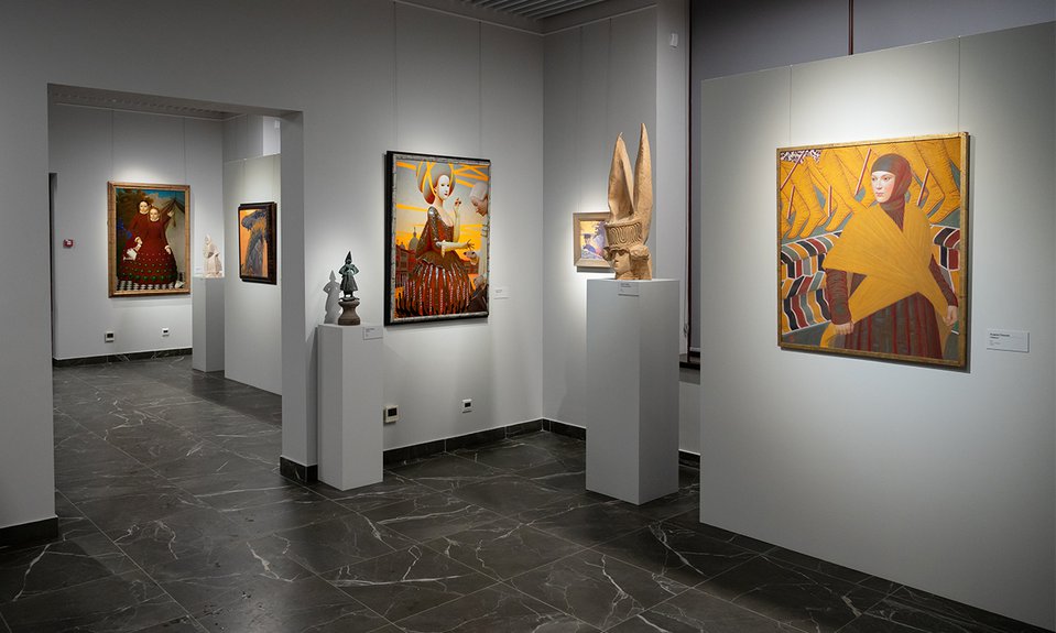 Творческий метод Ремнева основан на синтезе древнерусской иконописи, русской живописи XVIII века и конструктивизма. Чижов, в свою очередь, работает в традиции советской скульптуры, а центральный образ его пластики — женская фигура. Оба художника свободно соединяют мотивы разных эпох и обращаются к культурной идентичности народов России. Так, на одной из картин Ремнева изображена девушка в головном уборе, который напоминает украшенную монетами чувашскую тухью. Героини скульптур Чижова предстают в рубахах с пышными рукавами, нарядных душегреях и объемных сарафанах. Выразительным акцентом образов становятся переосмысленные художником традиционные головные уборы — кокошники, венцы и кички, гиперболизированные по форме и наделенные зооморфными чертами в орнаментике.