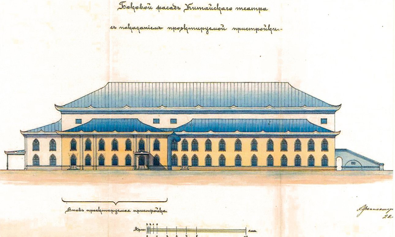 Китайский театр, или Каменная опера, был построен по проекту архитектора Антонио Ринальди в 1777–1779 годах в Александровском парке Царского Села. Павильон был приспособлен к постановке сложных балетов и опер и снабжен всей необходимой театральной машинерией. Зрительный зал, отделанный в китайском стиле, вмещал более 350 зрителей. В 1908–1909 годах театр капитально перестроил архитектор Сильвио Данини, заменив все деревянные конструкции металлическими. «По Высочайшему повелению» были пристроены два фойе, новые мраморные лестницы, устроены центральное отопление и вентиляция, применены современные на тот момент противопожарные усовершенствования. Сцену переоборудовали по последнему слову техники с сохранением ее облика на конец XVIII века.