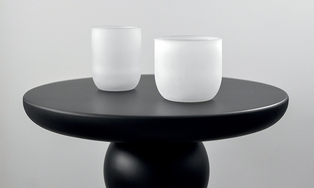 Индивидуализация каждого предмета — еще одна особенность этой коллекции. Перед обработкой на стекло наносится специальный трафарет с логотипом или именем будущего хозяина, что превращает тиражный объект в персонализированный и очень личный. Линейка включает в себя стаканы, свечи, вазы-декантеры и соусники.