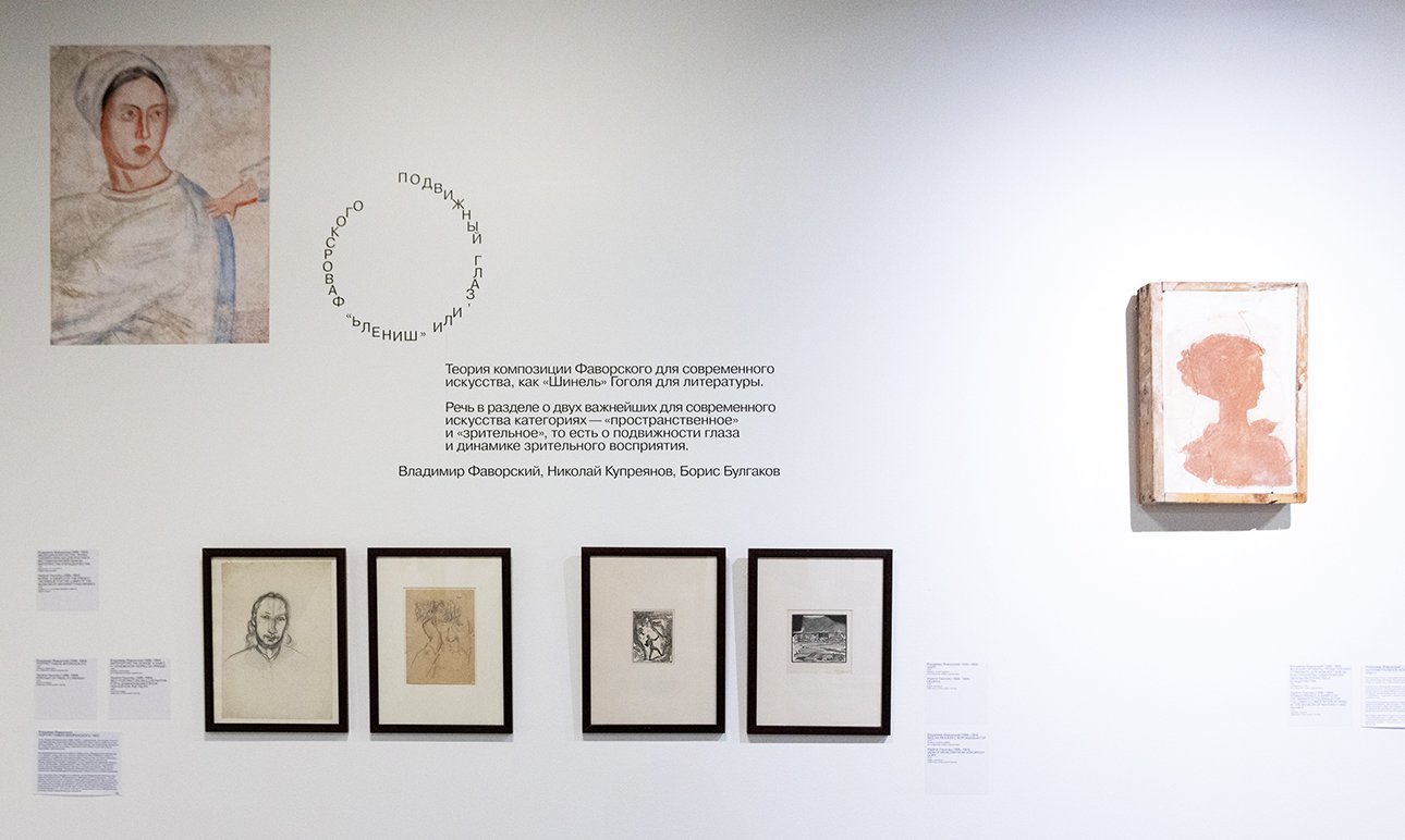Фаворский строил свою теорию вокруг идеи синтеза предмета и пространства, а «мерой пространства» называл человека. На выставке представлены архивные документы из собрания наследников Фаворского и его произведения, среди которых ключевое — «Женский профиль» начала 1930-х, созданный для оформления Музея охраны материнства и младенчества в Москве.