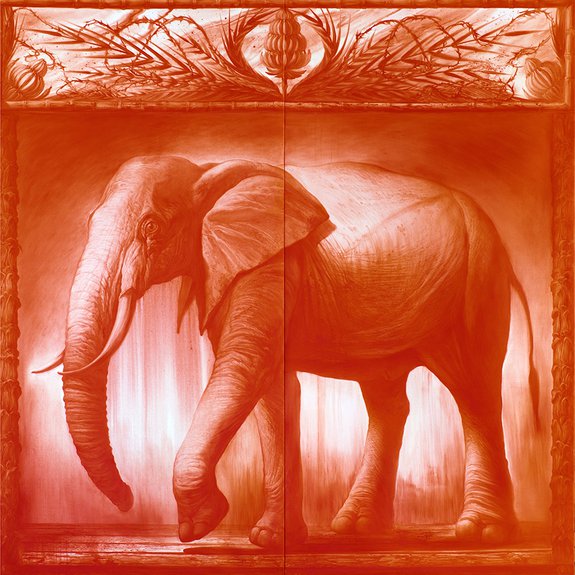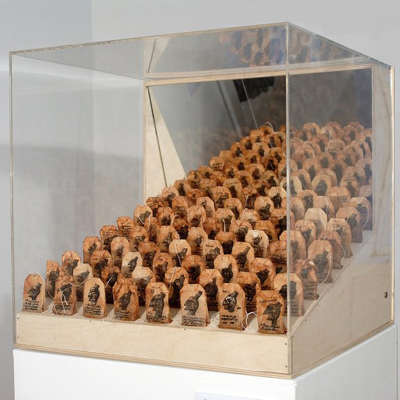 Александр Виноградов, Владимир Дубосарский. «Гол!». 2005–2012. Диптих. Фото: VLADEY Иван Чуйков. «Фрагмент открытки № 21». Из серии «Фрагменты открыток». 2005. Фото: VLADEY Александр Бродский. «Без названия» («72 чайных пакетика»). 1991. Фото: VLADEY Егор Кошелев. «Наш слон«. 2025. Диптих. Фото: VLADEY