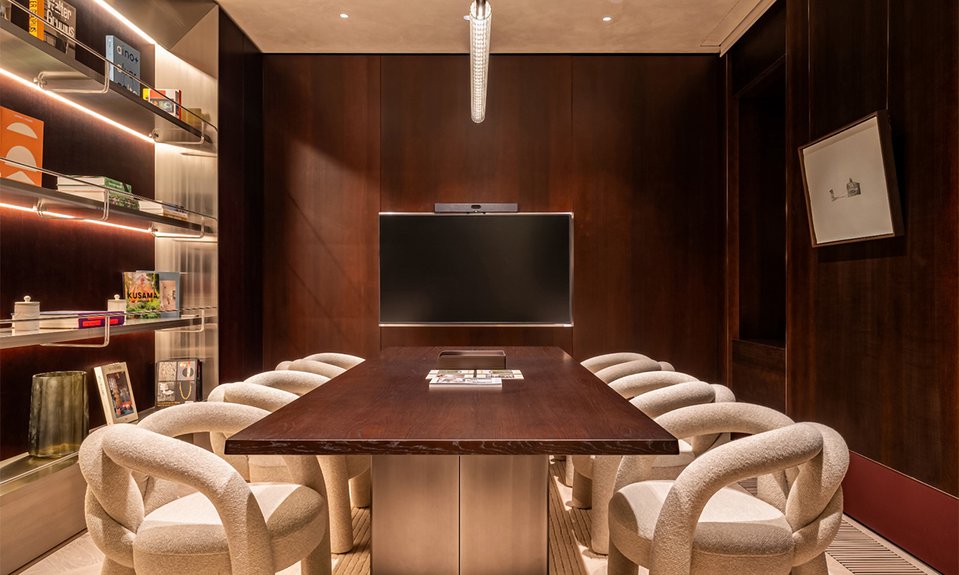 В сердце пространства располагается гостиная с камином для приема гостей. Здесь же представлены архитектурные макеты объектов из коллекции MR Private, спроектированные в мельчайших подробностях. В центре — Nicole, флагманский проект девелопера, первый deluxe-квартал в портфеле MR Private, общей площадью более 3 га в непосредственной близости от Кремля.