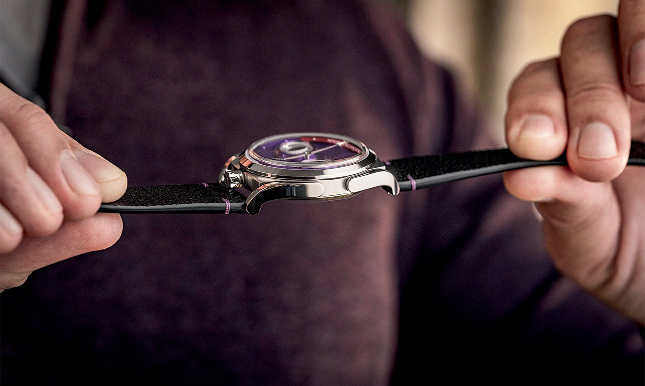 Самурайская тема раскрывается в материалах. Корпус диаметром 40 мм впервые выполнен из титана Grade 5 — легкого и прочного металла, часто используемого в аэрокосмической отрасли. Но самый интересный нюанс — это ремешок. Он изготовлен из кожи Himeji Kurozan, также известной как black diamond leather (англ. — черная алмазная кожа) — это отполированная вручную черная бычья кожа натурального дубления с традиционным лаком уруси. Такой же материал исторически использовался для отделки доспехов самураев. С внутренней стороны ремешок отделан кроличьей кожей в цвет циферблата.