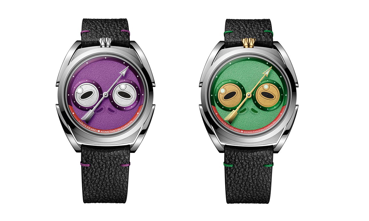 Творческий дуэт Louis Erard и мануфактуры Konstantin Chaykin уже успел зарекомендовать себя как один из самых ярких союзов в современной часовой индустрии. Их предыдущие опыты — превращение строгого регулятора (часы, в которых часовая, минутная и секундная стрелки находятся на разных осях) в харизматичного монстра «Пожирателя времени» и выпуск совместного турбийона — показали, что «высокая» механика может быть не только точной, но и остроумной.