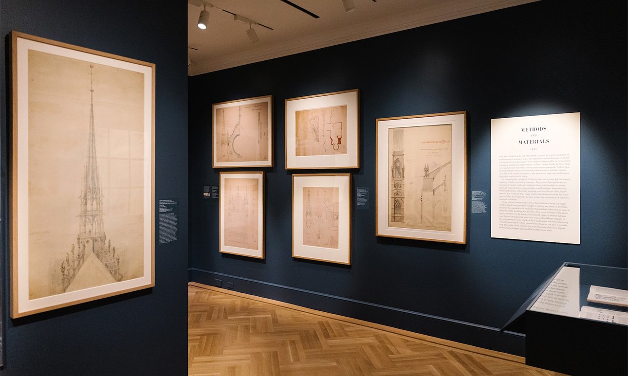 Считается, что в ходе реставрации 1850-х годов Виолле-ле-Дюк не только возродил, но и переосмыслил парижский Нотр-Дам. Высокий дубовый шпиль, заменивший более скромную средневековую версию, демонтированную в конце XVIII века, стал его вариацией на тему идеализированного прошлого. В экспозицию, разумеется, вошло множество детальных чертежей и рисунков собора, в которых Средневековье завораживающе соединяется со своего рода протомодернистским или по крайней мере технически проницательным видением. Демонстрационный рисунок 1857 года, на котором шпиль изображен в мельчайших подробностях отдельно от самого собора, в чем-то предвосхищает Эйфелеву башню. Но у интервенционистского подхода Виолле-ле-Дюка были и критики. В начале XX века его, по словам Брессани, «по сути очернили».